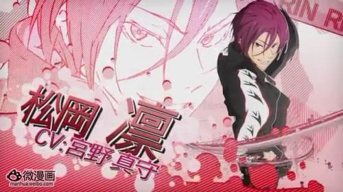 松冈凛(CV宫野真守)是鲛柄学园二年生,专攻自由泳和蝶泳,在五位主角中唯一就读于其他学校,是主人公七濑遥的主要对手。