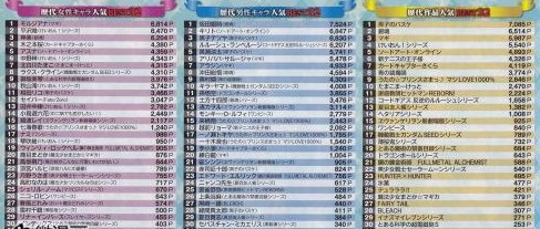 不过,和学研旗下另一本动画杂志《Megami》相比,《Animedia》的封面作品更多是《魔笛MAGI》《虎兔》《银魂》等女性向或在女性之中也有很高人气的作品。从这次榜单结果,也可以看出《Animedia》的读者倾向。