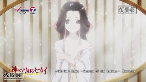 《只有神知道的世界》改编自若木民喜在《周刊少年SUNDAY》连载的人气漫画,讲述擅长恋爱游戏的少年桂木桂马,与来自地狱的恶魔艾露西结识,通过玩恋爱游戏的技巧与现实中的女生恋爱,以驱逐她们身上的“驱魂”的故事。此次是第三度TV动画化,将讲述原作中篇幅最长的女神篇剧情。预定7月8日在东京电视台首播。