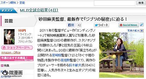 曾获得报知电影奖新人奖的导演砂田麻美(35岁)将推出一部以吉卜力动画工作室为题材的,名为《梦与狂气的王国》的纪录片电影将于今秋上映。