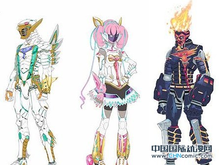 这些造型均由代表作是《兽装机攻断空我NOVA》的中北晃二负责设计,粉白色调的是女主角一之濑初,白金色调的是负责育成新人的橘清音,黑色调的是能力几乎达到人类极限的枇々木丈。