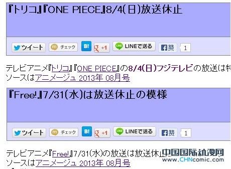 另外,京ANI制作,在TOKYO MX、爱知电视台、ABC朝日放送播出的7月新番《Free!》也将在7月31日停播一周。