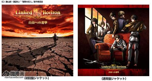 主题歌CD《向自由进击》收录有动画《进击的巨人》OP1《红莲之弓矢》和OP2《自由之翼》,创作和演唱者为“Linked Horizon”,这是人气音乐组合Sound Horizon的主宰Revo在商业合作时使用的名义。