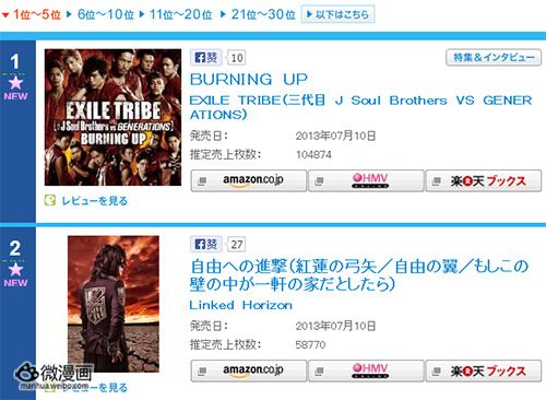 虽然没有排名第一,但这个成绩对于动画歌曲来说已经十分了得,此前两大动画歌手西川贵教和水树奈奈联手演唱的4月新番《革命机》OP首日销量也只有4.6万枚(首周销量11.5万枚),这样来看《进击的巨人》OP的首周销量也许有机会达到15万上下。