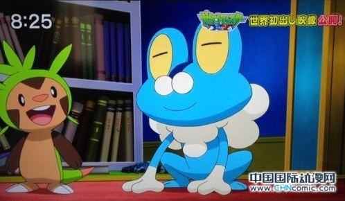 另外TV动画《口袋妖怪XY》的动画映像也在节目中得到公开。这次小智和比卡丘搭乘飞机来到了全新的卡洛斯地区,一下飞机就看到了3只从未见过的口袋妖怪炎耳狐、针栗鼠、泡沫蛙。这也是预定10月发售的3DS游戏《口袋妖怪XY》的三只初始口袋妖怪,新世代《口袋妖怪》的新御三家。在这次公开的映像中可以看到她们生灵活现的样子。
