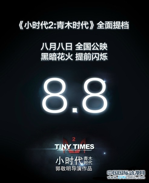 紧接着在下午4点时郭敬明通过网络宣布:“《小时代2》全面提档,8月8日全国公映。”这也给之前的种种猜测画上了句号,同时郭敬明还发布了影片的提档海报。《小时代2》定档在8月8日之后,就比之前同在8月9日上映的的影片《一场风花雪月的事》、《一夜惊喜》、《玛德2号》要提前一天公映。