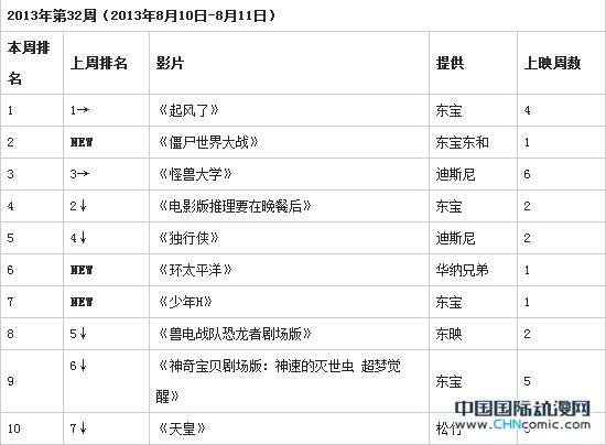第4位的《电影版推理要在晚餐后》目前已有突破100万人走进影院,票房也已经突破11亿日元,最终也目测将达到20亿日元。第6位是吉尔莫·德尔·托罗导演的最新好莱坞大片《环太平洋》,在首周的2天内共有13万4506人观影,票房入账2亿0809万7500日元。票房达到10亿日元已经是板上钉钉的事情,也有可能逼近20亿日元,不过和中国的5亿人民币相比就要差很多了。