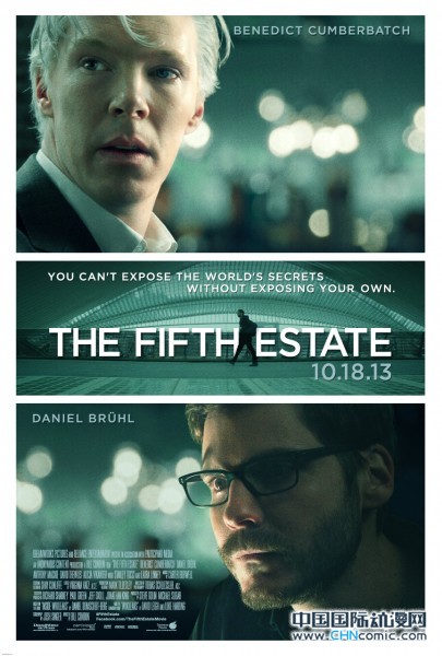 海报上的两个人,也就是《第五阶层》中两位男主角。一个饰演的是维基解密创始人朱利安·阿桑奇,另一个是前维基解密发言人丹尼尔·多姆沙伊特伯格。在杰西·艾森伯格演《社交网络》的马克·扎克伯格火了之后,康伯巴奇也饰演了一个互联网行业里有一定争议的领导者朱利安·阿桑奇,而丹尼尔·布鲁赫饰演的多姆沙伊特伯格就像《社交网络》里的安德鲁·加菲尔德,或者是《乔布斯》里的乔什·盖德,是主人公的左膀右臂,却也与他们产生分歧,成了“美国散伙人”。多姆沙伊特伯格后期离开了维基解密,创建了另一个名为“开放解密”的网站,颇有挑衅意味。
