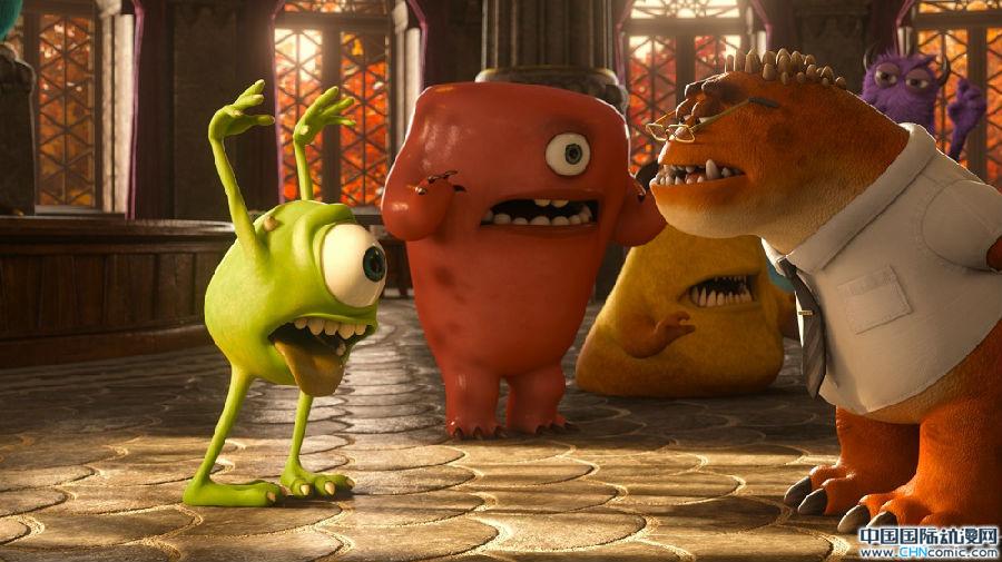 《怪兽公司》中的两位主角已经步入社会,算是成年人了,但《怪兽大学》则将他们带回到了学生时代,有各种各样的方法让主角们看起来更年轻,比如让他们的动作更活泼,谈吐的词汇更年轻化…… 但对于绘图设计师万敏而言,她则需要通过更鲜亮的颜色,更细节化的设计:“比如大家可以注意观察下毛怪的发型,还有给大眼仔设计的牙箍;在质感方面也是,他们的手指还有脚的质感都更加光滑,表情也更加萌。”
