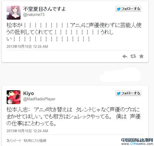 之前日本著名搞笑艺人松本人志曾在节目里说“别让演员去给动画配音了,交给专业声优去做吧”,的确,最近很多演员给动画配音,效果都不尽如人意,果然还是术业有专攻啊!
