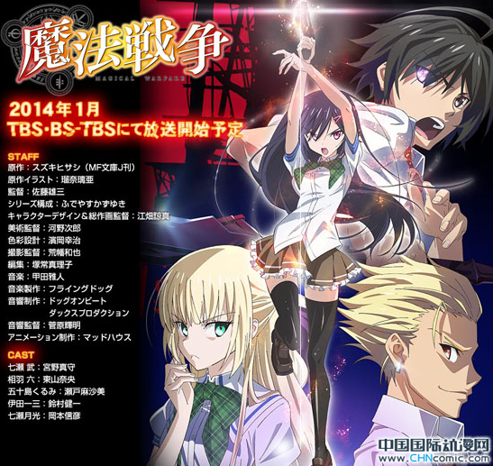 轻小说「魔法战争」和「星刻的龙骑士」、「精灵使的剑舞」、「No game No life」以及「魔弹之王与战姫」一起宣布动画化,是由铃木央(スズキヒサシ)撰写, 瑠奈璃亚插画的作品,主要讲述魔法相关的校园恋爱冒险故事。