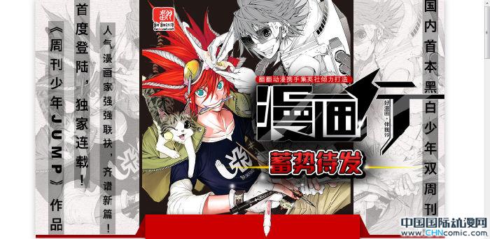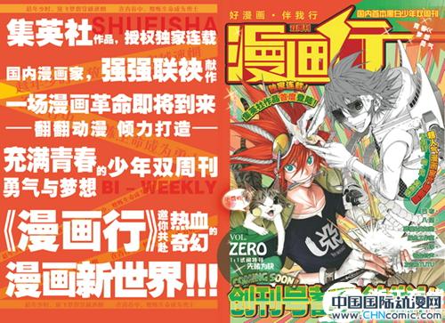 由日本集英社支持,《周刊少年JUMP》编辑部指导,杭州翻翻动漫打造的少年向漫画杂志《漫画行》预计将于2014年2月发行!除了国内原创漫画作品,还将和《少年JUMP》同步连载集英社人气漫画!《海贼王》《家庭教师reborn》《游戏王》等都在备选名单!