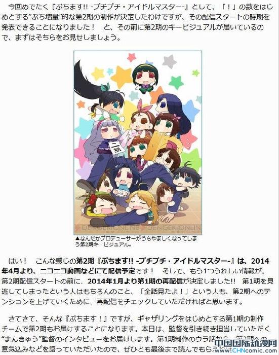 此前动漫网曾报道过,动画《迷你偶像第二季》制作决定。现在动画《迷你偶像》第二季宣布,本作预定于将于2014年春季正式开始放送。