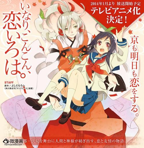 《稻荷恋之歌》是日本漫画家よしだもろへ所创作的漫画,该作在角川书店旗下的《YOUNG ACE》2010年8月号上开始连载。故事以古都京都为舞台背景,描写人类少女伏见伊奈里和谷物女神宇迦之御魂大神(稻荷神、狐仙)相遇的故事。该作动画的两首主题歌人选也已确定,片头主题歌《今日に恋色》和片尾主题歌《SAVED.》分别由歌姬May'n与坂本真绫演唱。