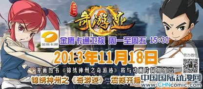 由湖南锦绣神州影视文化传媒有限公司荣誉出品的全年龄段大型原创奇幻旅游励志动画片《锦绣神州之奇游迹》即将于11月18日在金鹰卡通全国首播。据悉,《锦绣神州之奇游迹》是“动漫湘军”2013年目前为止唯一一部推出的原创动画,值得期待。