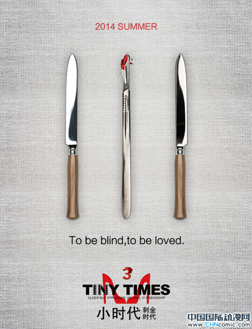 整款海报以灰白为主色,片名信息数字“3”上,一抹血迹让人心生疑惑。海报背景采用纱布纹理,似乎暗指修复寓意。整款海报意似通过“手术刀”“血迹”等元素,传递出影片“在一个受伤的时代,进行自我和相互疗治”的主题,更难免据此联想到《小时代》原著中“崇光整容”的关键剧情。此外,海报上一句英文“To be blind,to be loved”,出自原著小说,引发书迷多版本猜测。