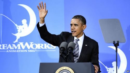 奥巴马在梦工厂的园区发表演说时,赞扬娱乐业协助传播容忍和多元化的价值,并努力克服先前的经济困境,并形容该行业为美国外交的一部分。