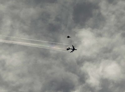 美国总统奥巴马26日访问洛杉矶时,两架F-15战机在禁飞区空中加油。战机随后发现一架飞机误闯禁航区,紧急前往拦截。