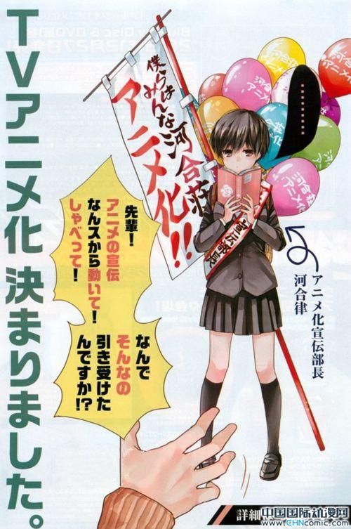 漫画「我们大家的河合庄」(僕らはみんな河合荘)近日宣布TV动画化,「我们大家的河合庄」动画将在下月发售的少年画报社旗下青年漫画杂志「YOUNG KING OURs」的次号中公开,同刊杂志上还有「苍蓝钢铁的琶音」的漫画也已经被TV动画化了!