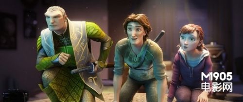 接下来的故事略落窠臼,凯瑟琳与没正形的战士诺德及叶灵军首领罗南为挽救森林,不得不单枪匹马和暴根人作斗争。在冒险和拯救世界之余,凯瑟琳与父亲的心结、诺德与罗南的“代沟”也慢慢得到解决。有意思的是,在《冰川时代》中,有动物代替人类阐述家庭和友情极有说服力,但是真正以人做主角时,蓝天工作室镜头下的父女二人都略显俗套,看来工作室还是更擅长让动物来说话。