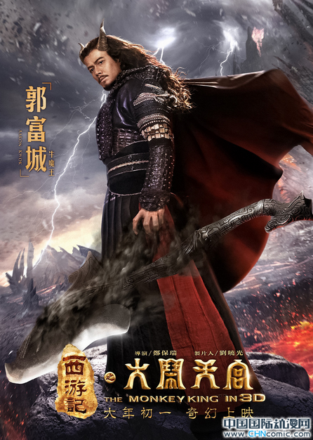 小说原著中仅在第三回描述了牛魔王与孙悟空结拜的故事,原本与孙悟空大闹天宫并无瓜葛,但在电影中牛魔王这条线将被创新演绎。与过去影视作品中凶神恶煞的牛魔王相比,郭富城版“牛魔王”堪称史上最帅。海报中,牛魔王迎风侧立于火焰山之间,掌控魔斧,冷峻霸气。