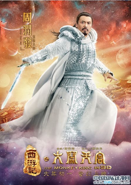 在这12款角色海报中,周润发饰演的“玉帝”造型今日首度揭开神秘面纱。据悉,此次发哥饰演的玉皇大帝在造型、性格、气质上都完全不同传统的玉帝形象,不再是黄袍加身,而是身披银色战甲,手持青龙剑,神情威严肃穆,尽显统领三界至尊的王者之气。导演郑保瑞介绍说:“以往影视文学作品中玉帝往往是高高在上的神仙,在宝座上发号施令,受众仙侍奉。而此次电影创作中,玉帝为维护三界和谐安定,将身披战甲,手执神兵利器与众神共同作战,守护天庭,玉帝更为立体的人物性格也让这一角色更值得尊重。”