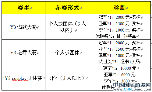 2014上海Y3动漫节将于2月8-10日在上海光大会展中心举行,2014上海Y3动漫节各项赛事报名今天开始了,各项赛事详情如下: