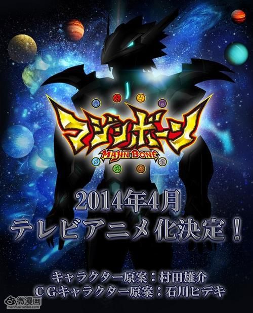 日本万代有限公司携手集英社、东映动画,即将推出一系列全新的企划。其中,集换式卡牌游戏《魔神之骨(Majin Bone)》确定将于2014年4月动画化,并在东京电视台播出。据悉,该作的角色原案交由日本著名漫画家、曾创作过《光速蒙面侠21》《一拳超人》等经典之作的村田雄介,而CG角色原案则由石川秀树担当。