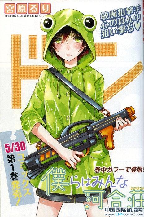 由日本漫画家宫原琉璃原作的「我们大家的河合庄」于2010年开始连载,目前单行本已发行4卷,而「我们大家的河合庄」动画计划于TBS、BSTBS等电视台播出。「我们大家的河合庄」故事讲述了因为父母工作迁移而开始独居的男子高中生宇佐入住进了河合庄,在那里,他发现自己暗恋的前辈小律居然也和自己住在同一个地方。于是,宇佐便希望能够在升入高中以后安稳、充实地与聪明又清秀的她共度美好时光,只可惜在初中时代总遇到倒霉事的他,如今又碰见了一个变态级的舍友……