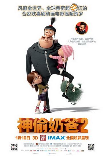 即将于1月10日上映的环球动画大片《神偷奶爸2》(Despicable Me 2)日前公布了电影配音片段以及花絮。在第二部故事中,邓超配音的“坏蛋奶爸”格鲁金盆洗手,变身为慈祥可亲的“全职奶爸”并将他的地下基地改造成生产果冻和果酱的生产线。与此同时他的三个养女、以及小黄人也将携手继续耍宝卖萌。