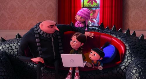 《神偷奶爸2》中,洗心革面的可爱坏人格鲁先生已经完完全全变成了受三个小女孩任意摆布的“全职奶爸”,他金盆洗手,开始成为一位负责任的好爸爸,并且把自己的地下基地改造成生产果冻和果酱的生产线,做起了正经生意……当改邪归正的大盗格鲁被“反恶人联盟”招募参与行动时,他拒绝的第一个理由就是:“我现在是一个父亲了!”