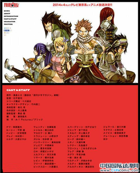 真岛浩人气漫画《妖精的尾巴》宣布再次动画化,将于2014年4月在东京电视台开播。现在《妖精的尾巴》新版动画官网已经上线,新TV动画将从“大魔斗演武”最终日7月7日发生的新事件开始讲述,详细STAFF和CAST也已经公开。