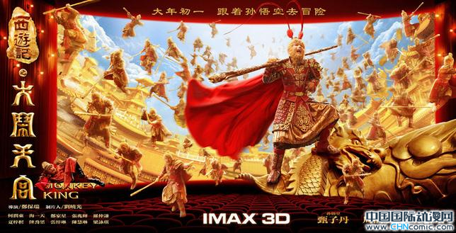 由甄子丹、周润发、郭富城众明星主演的华语魔幻巨制《西游记之大闹天宫》将于2014年大年初一上映。《西游记之大闹天宫》今日正式公布与IMAX公司达成战略合作,同时片方还发布了一款专属IMAX的“万猴闹天庭” 海报,海报锁定了《西游记》孙悟空“吹毛成兵”的经典场景,营造了万只美猴王冲出大银幕的奇观。