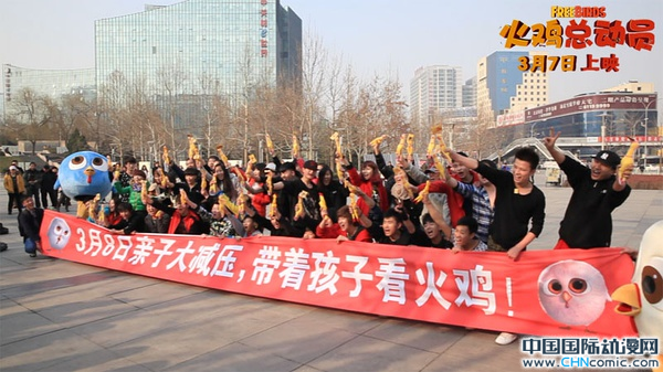 好莱坞动画新片《时光鸡大作战/火鸡总动员》将于3月7日登陆全国院线。北京时间3月2日下午,距《火鸡总动员》上映仅剩5天时间,北京中关村广场上突然出现了滑稽的一幕:几只“萌萌鸡”出现在热闹的人群中,带领一群小伙伴玩起了热舞快闪活动,吸引了不少周末逛街的路人围观。