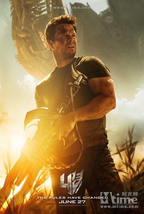 《变4》角色海报,马克·沃尔伯格饰演的科学家Cade Yeager手持神秘外星武器