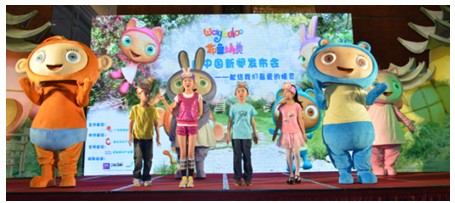 (图2:发布会上,布鲁精灵与中国小朋友一起体验娜拉世界的奇妙)