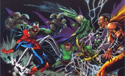 “罪恶六人帮”是一个由《蜘蛛侠》故事里反派们组成的团伙,成员组成有好几个版本,漫画中这个组织最早是由“章鱼博士”(Doctor Octopus)发起,初始成员是电光人(Electro)、沙人(Sandman)、秃鹰(Vulture)、神秘法师(Mysterio)、猎人克雷文(Kraven the Hunter)。