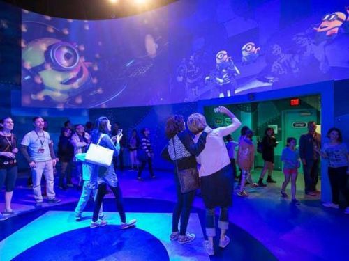 在这个主题公园里,每位游客都能从奈安内博士(Dr. Nefario)手中接过3D眼镜,然后听格鲁和女儿们解释“变身小黄人”的流程,期间会放映大量的小黄人动画,让游客与小黄人“亲密接触”。更过瘾的是,游客还可以被“扔”进动画世界里,通过体感设备体验影片和游戏中曾经出现过的高压水枪、火焰、激光等。