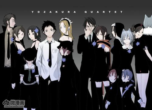 漫画《夜樱四重奏》是安田铃人连载于《月刊少年天狼星》的作品。2008年10月起,改编的动画开始在TBS系电视台放映。故事以樱新町为舞台,当樱新町连续在夜晚发生奇怪事件,在这个樱花林立的地方,因为得到非人类力量者的数量增加,令混沌程度越来越严重, 挺身面对他们的是“比泉生活协商事务所”所有成员,新感觉的感人动作故事,就此展开……