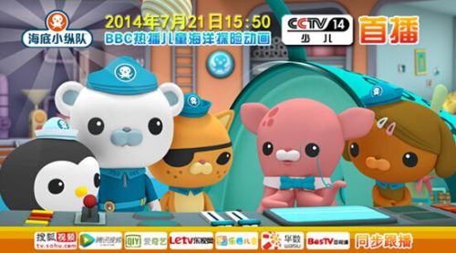 7月21日15:50分,《海底小纵队》(Octonauts)正式登陆央视少儿,并将在搜狐、腾讯、爱奇艺、乐视、乐看等视频网站同步跟播。播出内容包括动漫片前3季和7部特别篇。