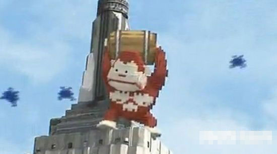 真人版电影《像素入侵纽约城》日前曝光首张剧照, 这部影片改编自2013年引发全世界玩家共鸣的怀旧创意短片《像素入侵地球》。在原作总长2分30秒短片中,巨大的“像素云团”出现在美国,把行驶中的小汽车变成一盘“像素散沙”,此后大家熟悉的“吃豆”、“俄罗斯方块”、“打砖块”等游戏中的经典元素轮番登场,蹂躏纽约。地铁被吃掉、摩天大楼被一层层“消灭”,巨大的猩猩站在帝国大厦顶端掷出酒桶,整个城市陷入混乱,地球上的一切都被“像素化”。