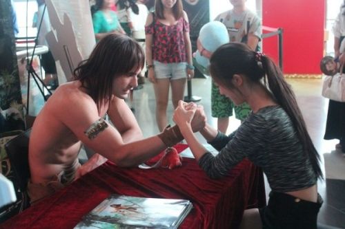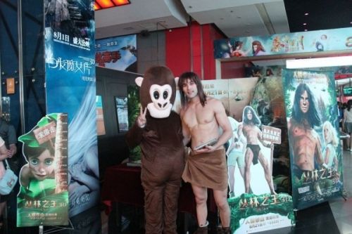 就在周六,这件事又有了第三集。人猿泰山又出现在了北京某影院中,并兼职担任影院的传单发放员、检票员和售货员。至此也证实了人们之前的猜测,人猿泰山确是由3D动画电影《丛林之王》策划的一系列事件营销。除了发传单等常规工作,人猿泰山还在影院休息区大摆擂台,只要比赛掰手腕能战胜他的,就能得到他送出的一个《丛林之王》猩猩挂坠,前来挑战的观众络绎不绝,而且大都是女孩和小朋友,识趣的泰山自然屡屡“落败”,现场笑声不断。