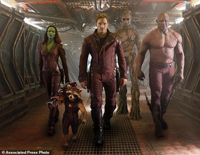 主演克里斯•帕拉特和佐伊•索尔达娜联手,以奇幻的太空冒险摘走《忍者神龟》票房冠军的王冠。 “这部电影来得正是时候”,Rentrak资深媒体分析师保尔.德加拉伯迪安说“当夏季票房惨淡时,《银河护卫队》的到来为票房注入了活力。令人惊讶的是,这部电影在8月首映。”