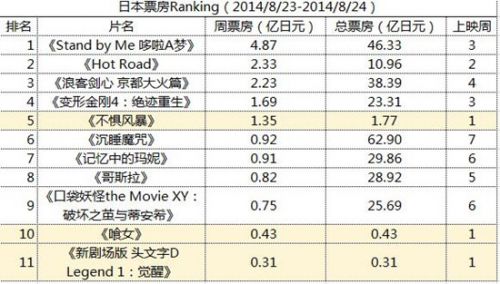 日本票房Ranking(2014.8.23-2014.8.24)