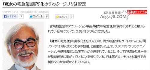此前,宫崎骏导演的经典动画“魔女宅急便”将拍摄真人版的消息,来源是海外电影情报网Twitch,该网站同时传出这部电影将由“咒怨”的导演清水崇担任导演,制作方方面含糊其辞说道不清楚是日本国内拍摄还是由海外来拍摄。关于翻拍的传言吉卜力第一时间进行了否认。