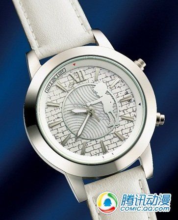 这块手表的设计是剧中人物真正戴过的款式,表盘上有砖块图案和柯南的阴影。表盘的背面还刻有限定版的数字。表带有银色的手链表带和剧中出现的白色皮革表带两种可供选择。