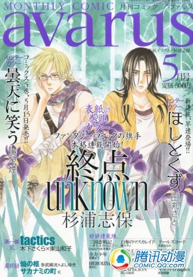 《月刊Comic Avarus》创刊于2007年9月,“Avarus”在拉丁语中就是“贪欲”的意思,杂志中主要刊登女性向作品。现在壱村仁、渡边祥智都在这里连载。