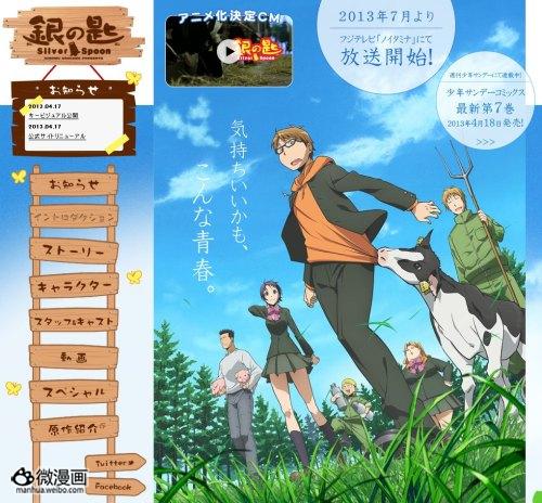 荒川弘人气漫画《银之匙》宣布动画化,将从7月开始在富士电视台noitaminA时段放送。现在动画官网改版,公开了最新视觉概念图和登场角色介绍。