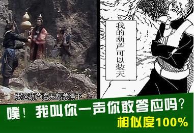 我们的祖先创作了《西游记》这部伟大的作品,里面塑造了许多生动鲜明的形象,然而在日本动漫《火影忍者》里,也出现了金角银角、孙悟空等一系列形象,甚至连法器(紫金葫芦,芭蕉扇),法术(叫人的名字,如果这个人答应就会被收进紫金葫芦)都原封不动的抄袭过去。在568话的漫画里,甚至连齐天大圣孙悟空,如意金箍棒都原封不动的抄袭出来。