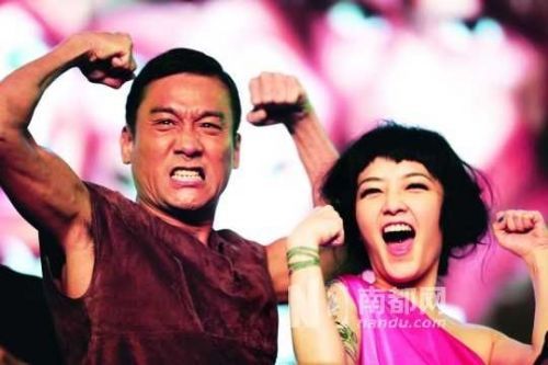 发布会现场,梁家辉、范晓萱展示咕噜家族的“力大无比”。 南都记者 贺顿 摄